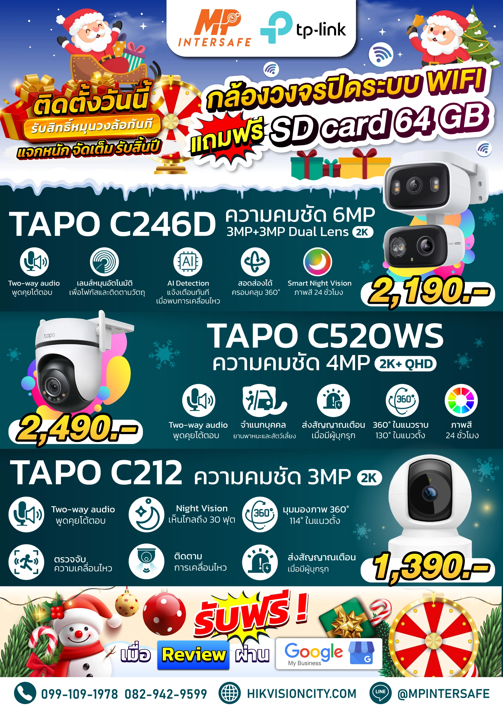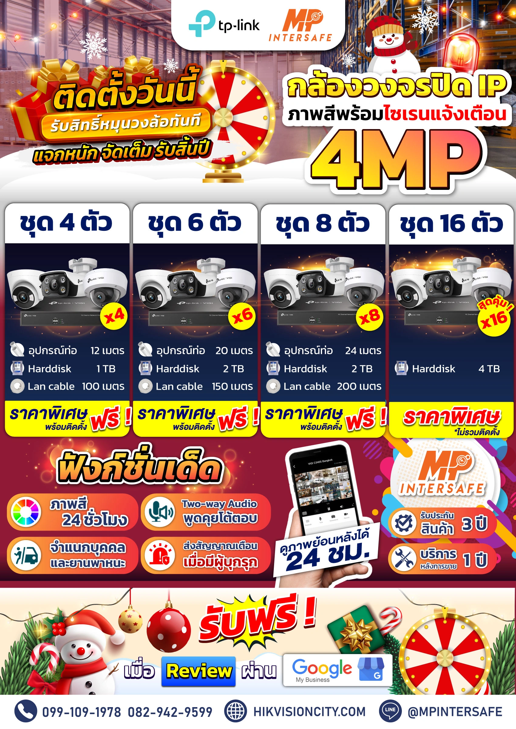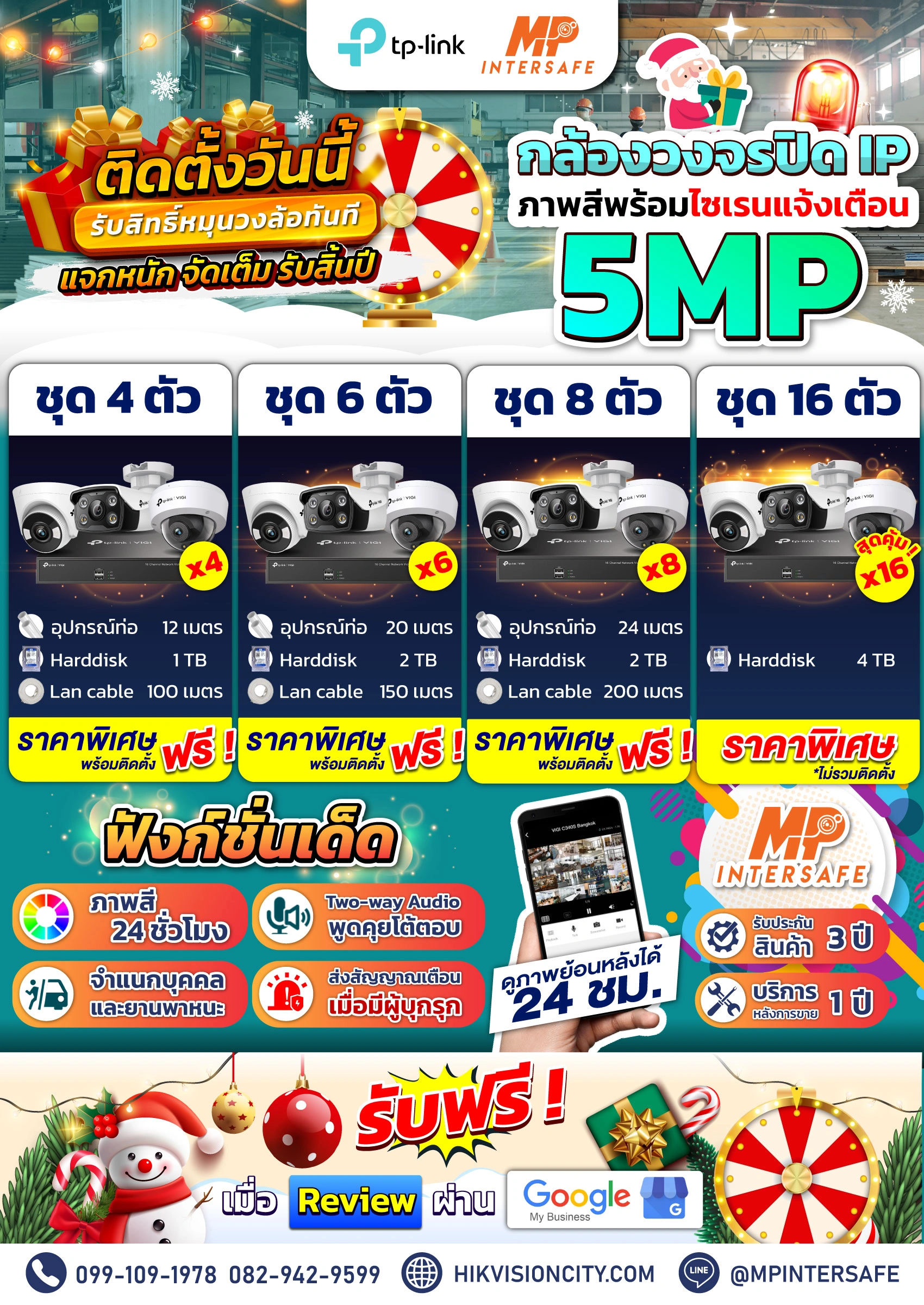 โปรเด็ดมาแล้ว! ชุดกล้องวงจรปิดราคาสุดพิเศษ แค่รีวิว Google ก็มีสิทธิ์ลุ้น! หมุนวงล้อฟรีทันทีของรางวัลสุดปังจาก MP INTERSAFE ดูแลครบ คุ้มสุด ห้ามพลาด! 🔥