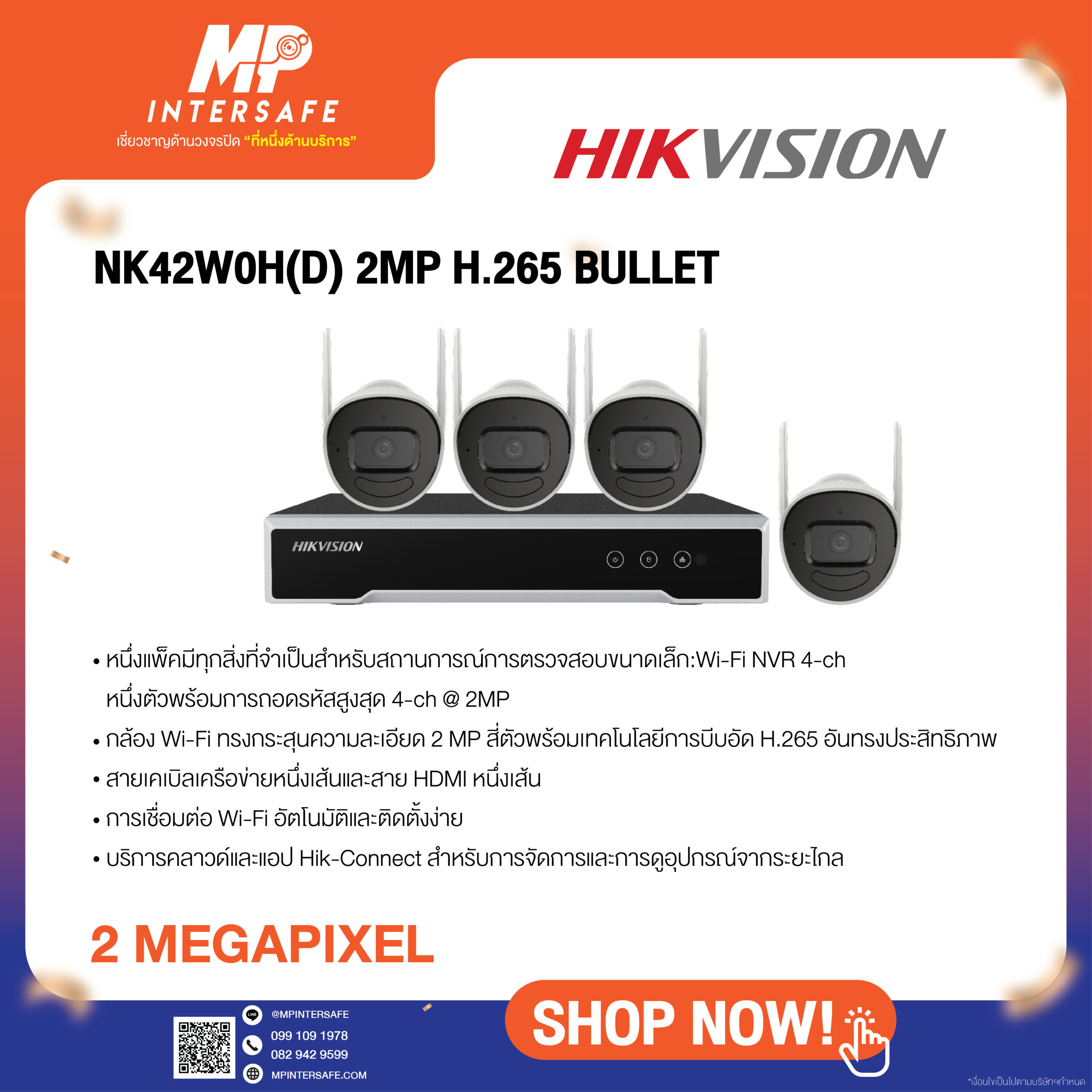 กล้อง Wi-Fi ทรงกระสุนความละเอียด 2 MP สี่ตัวพร้อม H.265 อันทรงประสิทธิภาพ