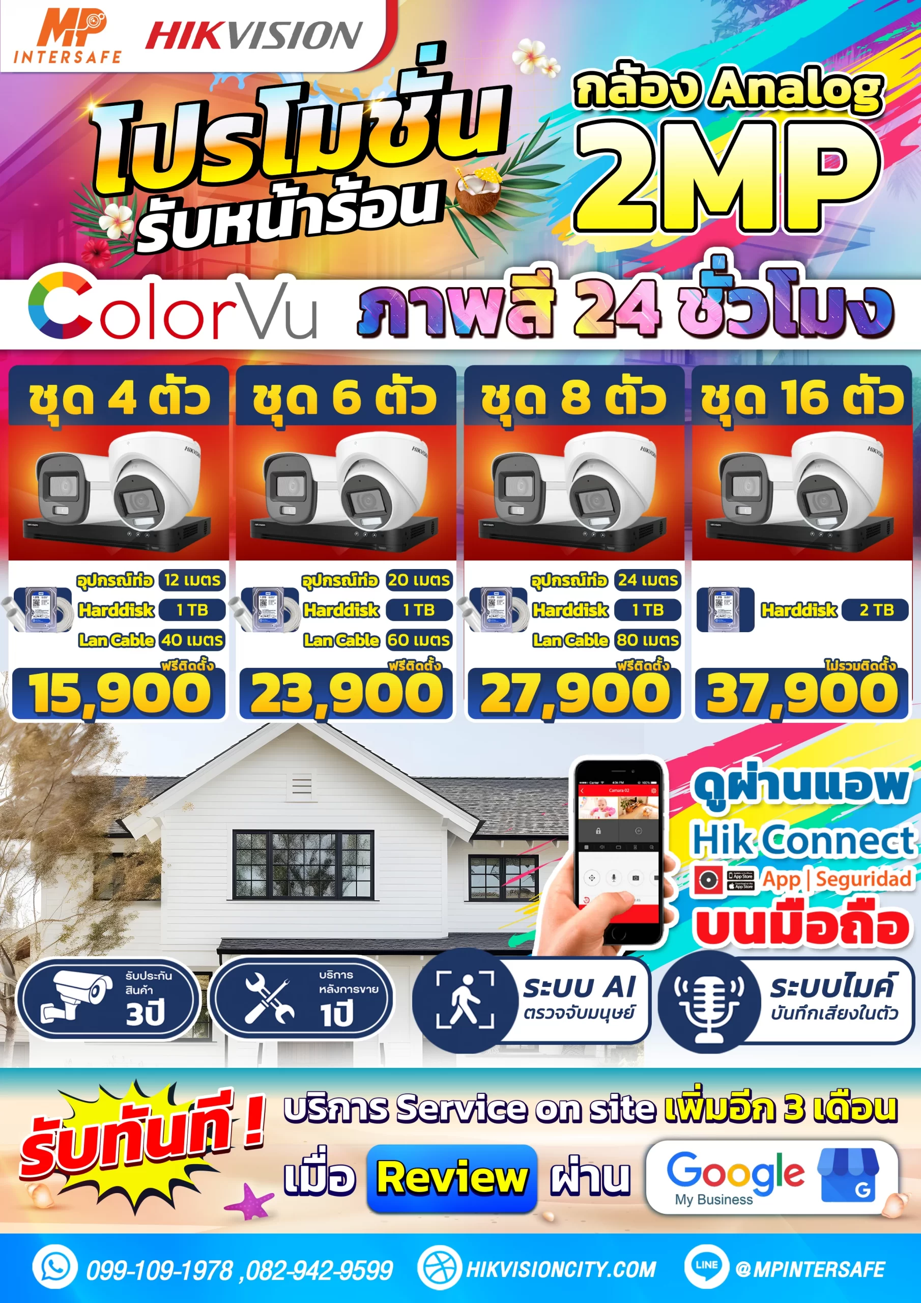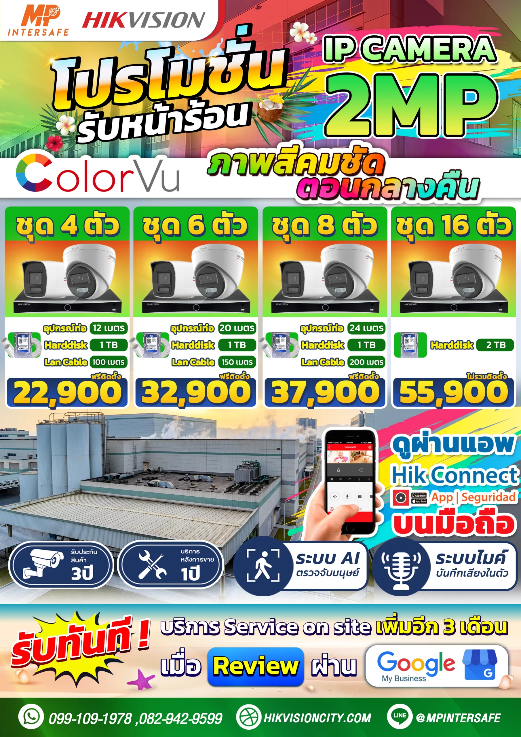 กล้องวงจรปิด Hikvision IP 2 ล้านพิกเซล ColorVu เป็นตัวเลือกที่ดีสำหรับการรักษาความปลอดภัย ด้วยความสามารถในการบันทึกภาพสีได้ทั้งกลางวันและกลางคืน ทำให้ภาพที่ได้มีความชัดเจนและมีรายละเอียดสูงตลอดเวลา ไม่ว่าจะเป็นเวลากลางวันหรือในที่มืด เทคโนโลยี ColorVu กล้องยังมีไมโครโฟนในตัวที่สามารถบันทึกเสียงได้อย่างชัดเจน ทำให้การตรวจสอบเหตุการณ์เป็นไปอย่างครบถ้วน ด้วยระยะการมองเห็นสูงสุดถึง 30 เมตร