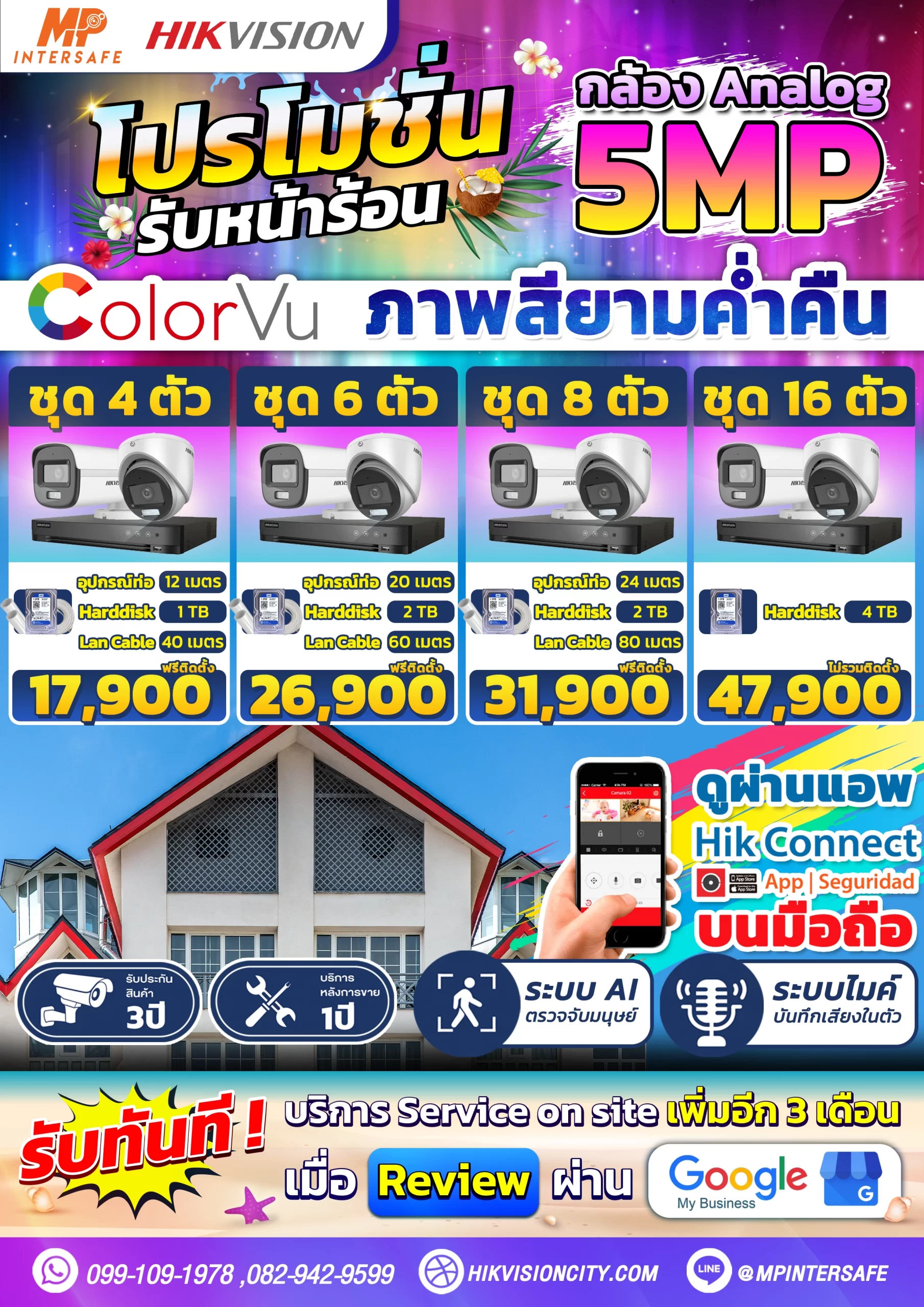 กล้องวงจรปิด Hikvision 5 ล้านพิกเซล (3K) ระบบ Dual Light และ ColorVu เป็นตัวเลือกที่ยอดเยี่ยมสำหรับผู้ที่ต้องการความปลอดภัยและคุณภาพของภาพที่สูงสุด ด้วยความละเอียดสูง เทคโนโลยีที่ทันสมัย