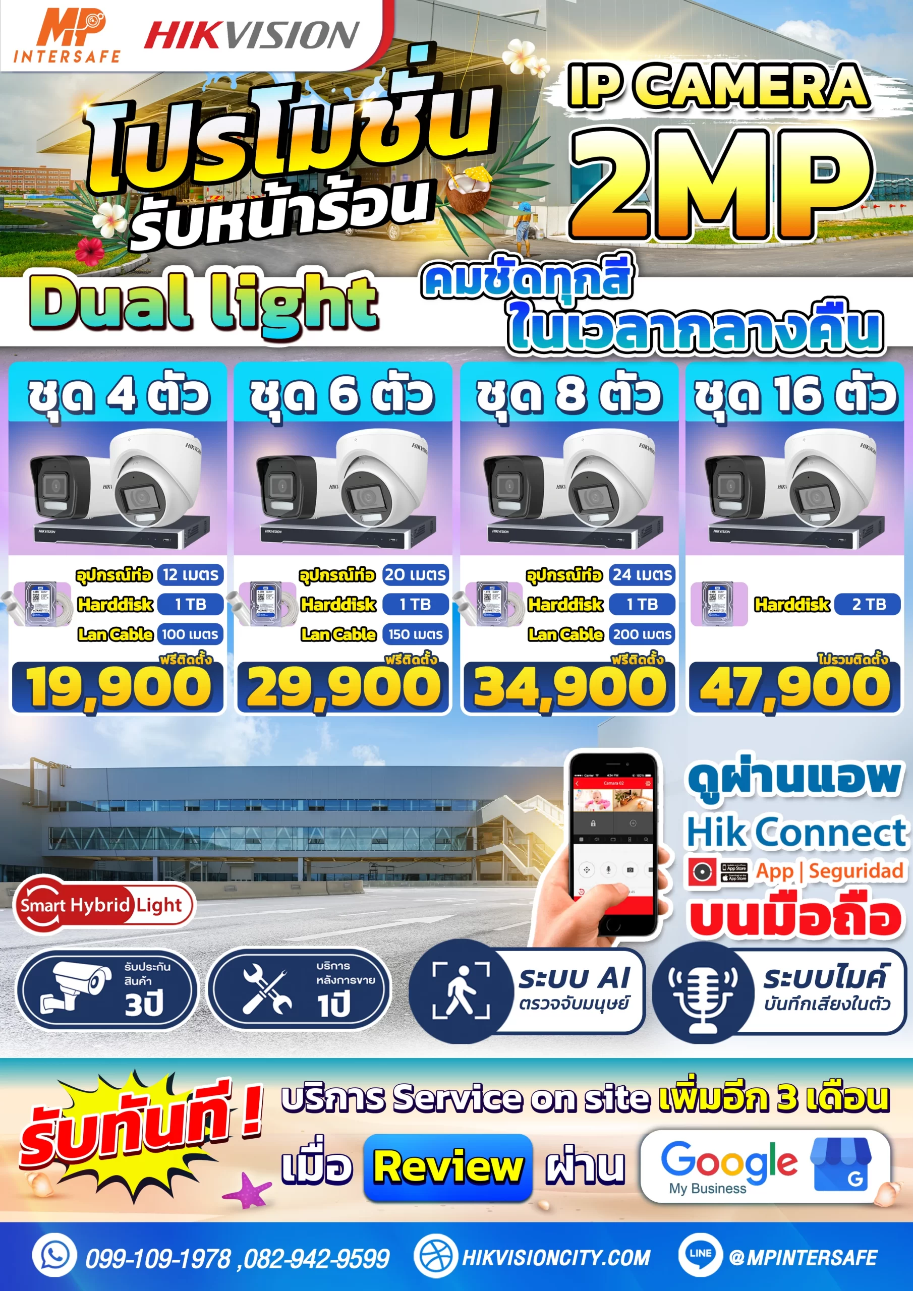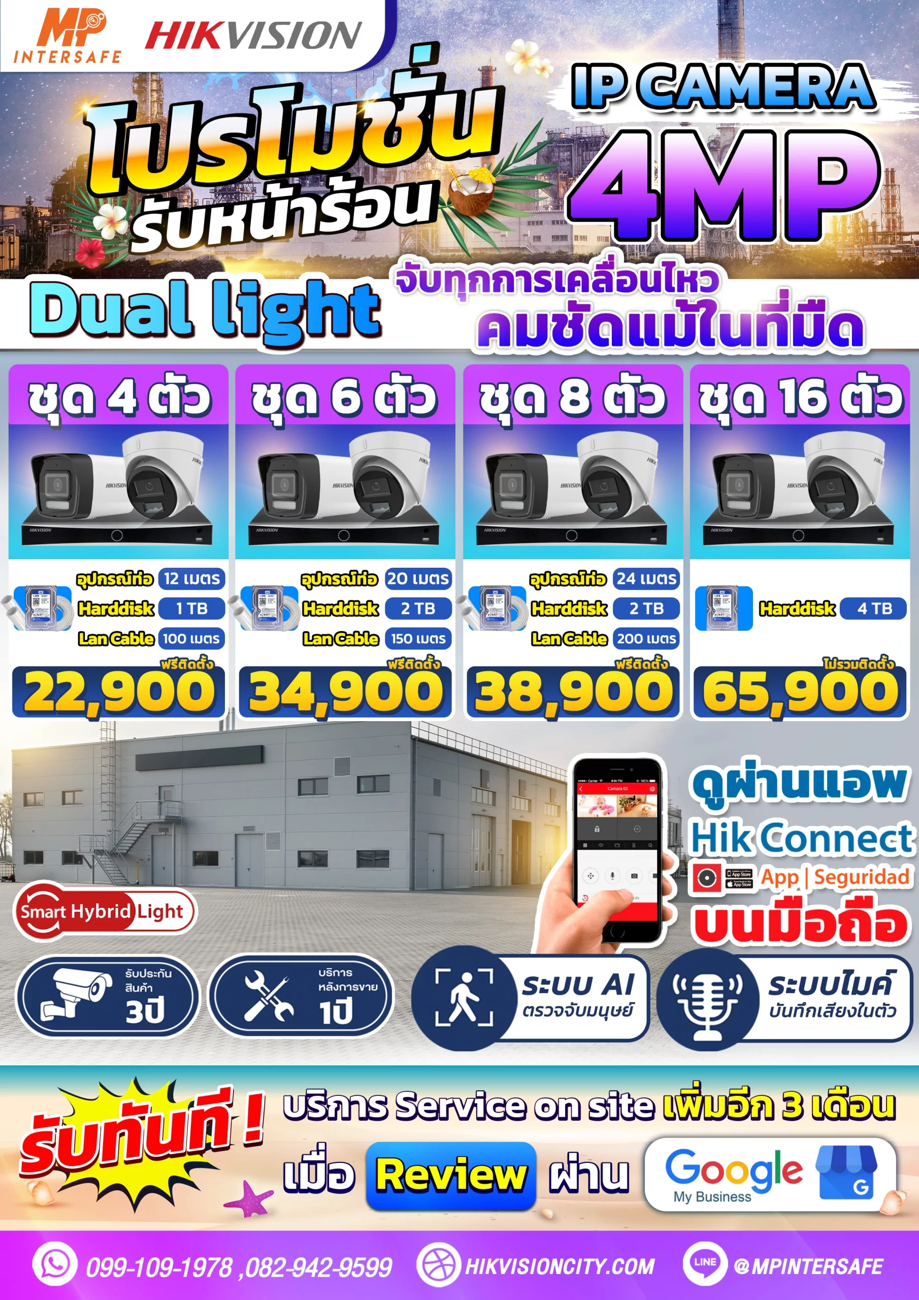 กล้องวงจรปิด Hikvision IP 4 ล้านพิกเซล รุ่น Dual Ligh มีความสามารถในการทำงานในทุกสภาพแวดล้อม ด้วยความละเอียดที่สูงถึง 4 ล้านพิกเซล กล้องนี้สามารถให้ภาพที่คมชัดและชัดเจนทั้งในช่วงกลางวันและกลางคืน โดยเฉพาะในเวลากลางคืน เทคโนโลยี Smart Hybrid Light ช่วยเพิ่มความสว่างของภาพด้วยการปรับแสงอัตโนมัติและไฟสว่างเมื่อมีการเคลื่อนไหว การใช้เทคโนโลยีอินฟราเรดช่วยให้ภาพที่บันทึกในที่มืดมีความชัดเจนและไม่มีสัญญาณรบกวน