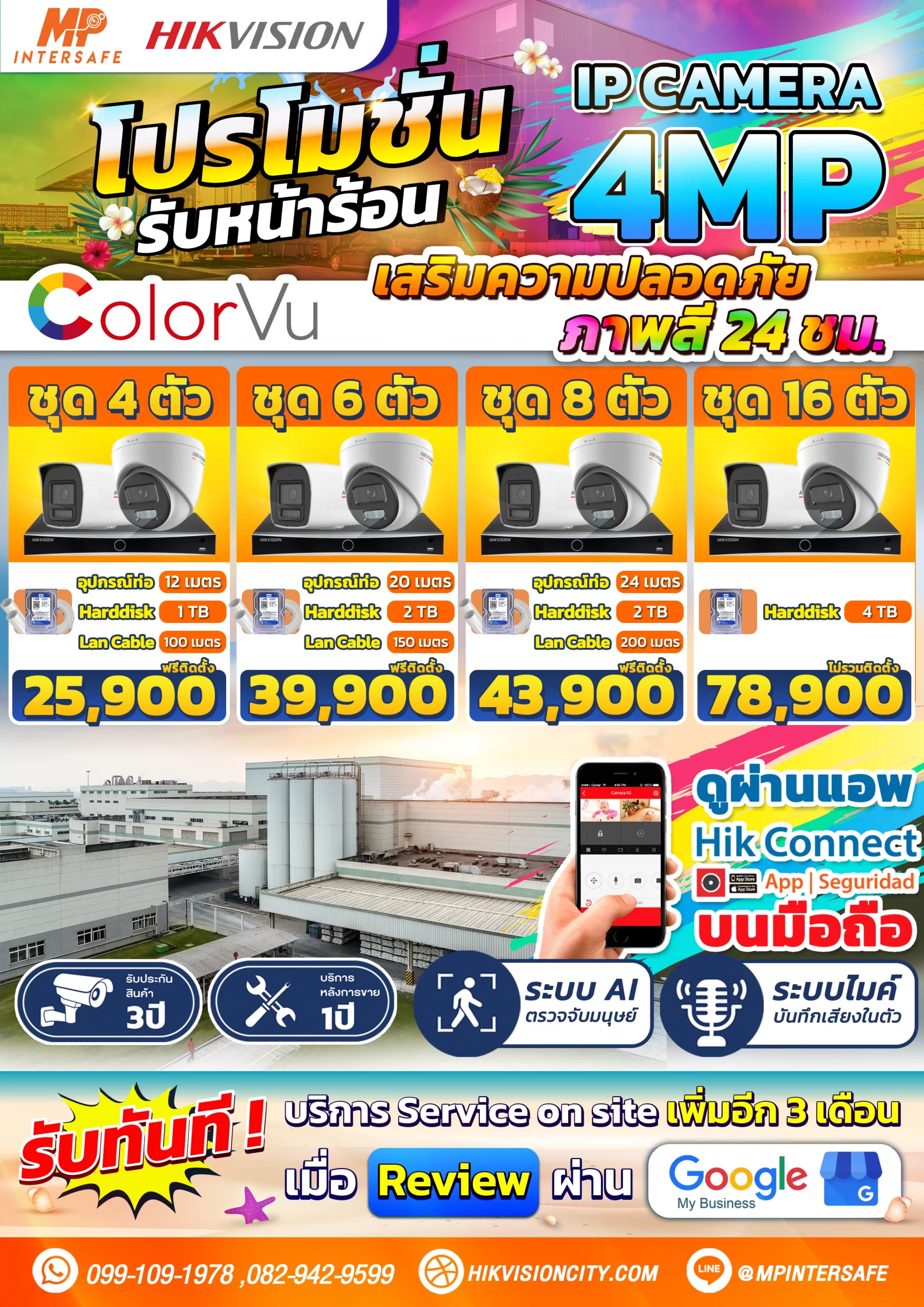 กล้องวงจรปิด Hikvision IP 4 ล้านพิกเซล ColorVu มาพร้อมกับเทคโนโลยีที่ล้ำสมัย ไม่เพียงแต่สามารถบันทึกภาพสีได้ตลอด 24 ชั่วโมง ด้วยความละเอียดสูงถึง 4 ล้านพิกเซล แต่ยังมีฟังก์ชันที่ช่วยในการถ่ายภาพย้อนแสงสูงถึง 120dB ด้วยเทคโนโลยี WDR (Wide Dynamic Range) ทำให้สามารถจับภาพได้อย่างชัดเจนแม้ในสภาพแสงที่ซับซ้อนหรือมีแสงสว่างมากที่มาจากด้านหลัง อีกทั้งยังมีไมโครโฟนในตัวที่สามารถบันทึกเสียงได้อย่างคมชัด ทำให้การเฝ้าระวังและบันทึกเหตุการณ์เป็นไปอย่างมีประสิทธิภาพและครอบคลุมทุกมิติของการรักษาความปลอดภัย